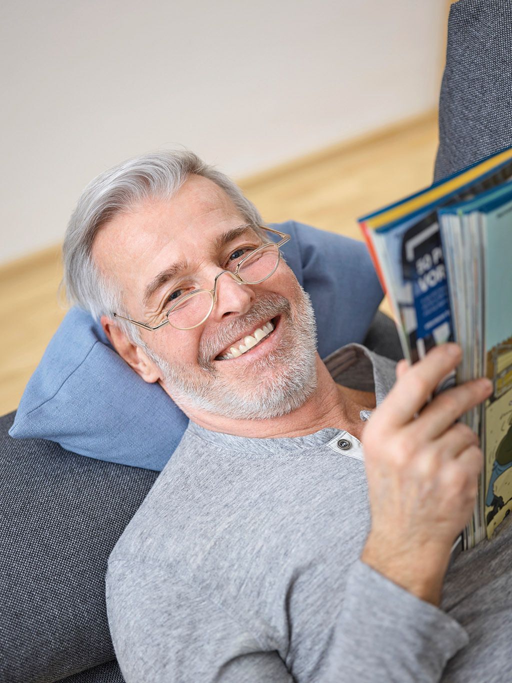 Die handliche Lupenhalbbrille BINO med S2 sieht aus wie eine normale Lesebrille, kommt aber dann zum Einsatz, wenn die normale Brille nicht mehr ausreicht. Der Vorteil einer Lupenhalbbrille gegenüber einer herkömmlichen Lupe ist, dass der Benutzer die Hände beim Lesen frei hat, z. B. für die Bedienung von Smartphones oder bei Näh-, Bastel- und handwerklichen Arbeiten. Die zeitlose Lupenhalbbrille BINO med S2, die in Deutschland produziert wird, ist sehr leicht und unauffällig und kann somit auch gut unterwegs eingesetzt werden. Die Lupenhalbbrille ist in individuellen Brillenglasstärken erhältlich. Des Weiteren kann sie auch mit kontraststeigernden und Schutzfiltern (Blaulicht/UV) ausgestattet werden.