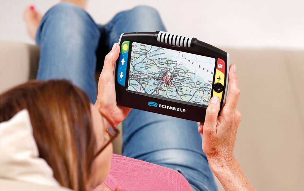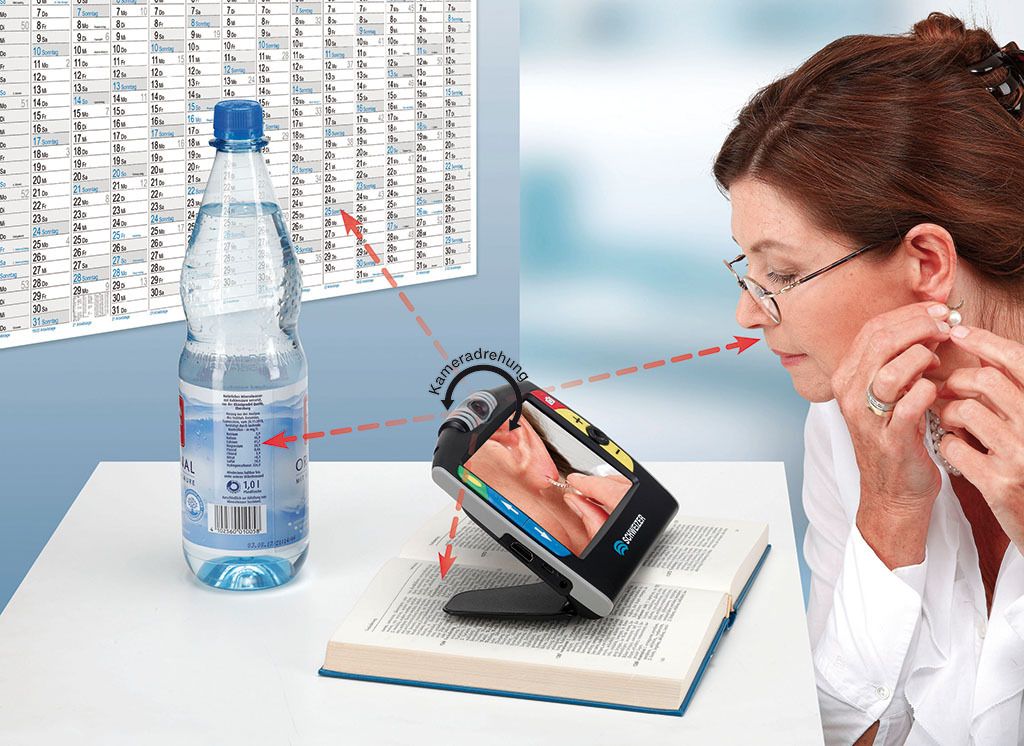 Mit dem großen, hochauflösenden Display von 7“ (17,5 cm) und den Funktionen der dynamisch einstellbaren Leselinie und Textmaske verbindet die eMag 70 HD die Eigenschaften eines Bildschirmlesegerätes mit der Flexibilität einer elektronischen Handlupe.
