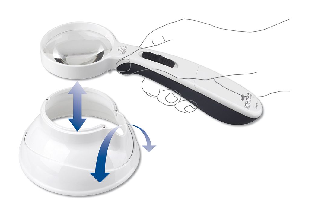 Für mobilen Einsatz: Lupe einfach vom Lupenkopf